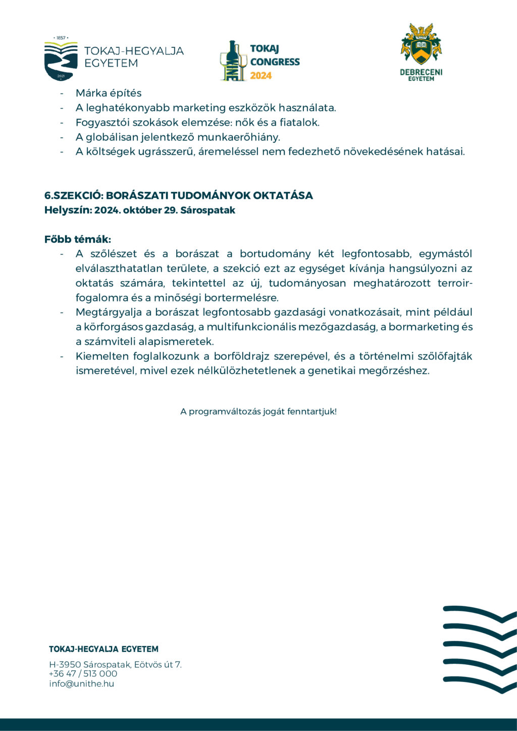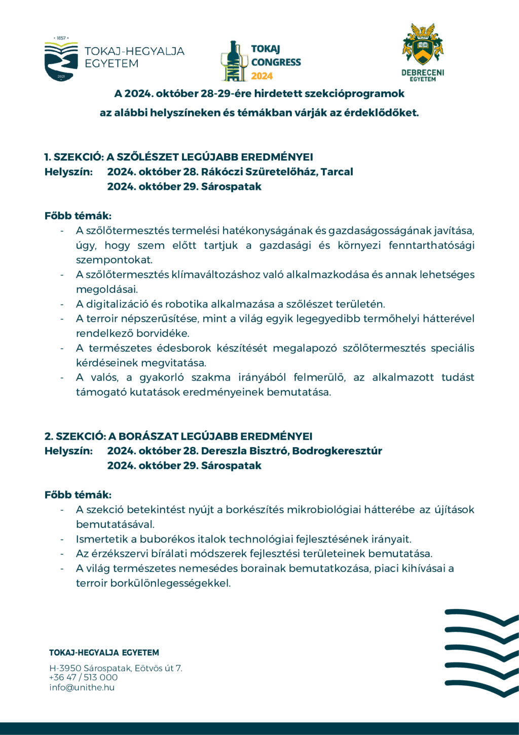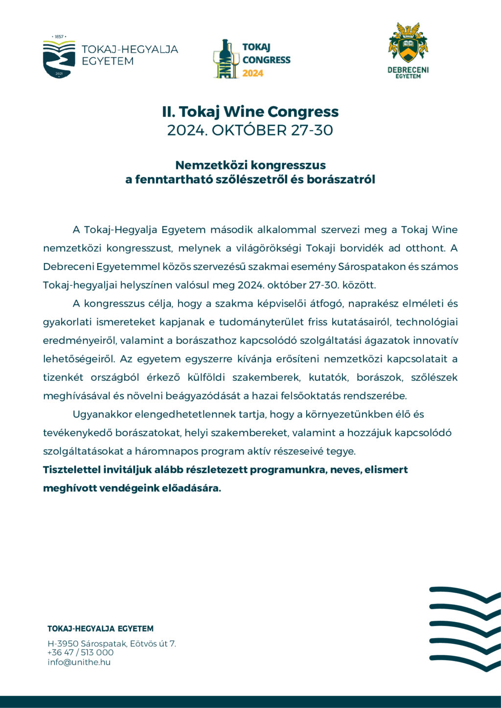 II. Tokaj Wine Congress – Nemzetközi kongresszus a fenntartható szőlészetről és borászatról