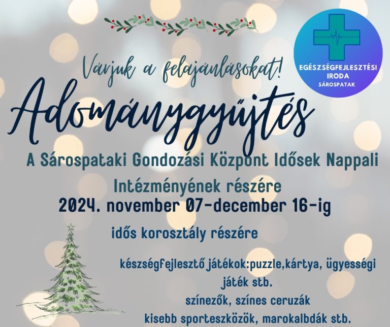 Idén a SÁROSPATAKI GONDOZÁSI KÖZPONT IDŐSEK NAPPALI INTÉZMÉNYE részére várjuk a felajánlásokat