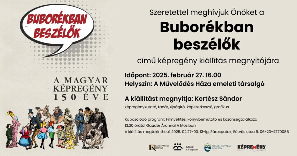 Ezt követően 16.00 órától Kiállításmegnyitó, kötetlen könyvbemutató és közönségtalálkozó lesz Kertész Sándorral, a Buborékban beszélők – A magyar képregény 150 éve című könyv és tárlat kapcsán. Moderátor : Drabancz Mihály Róbert.