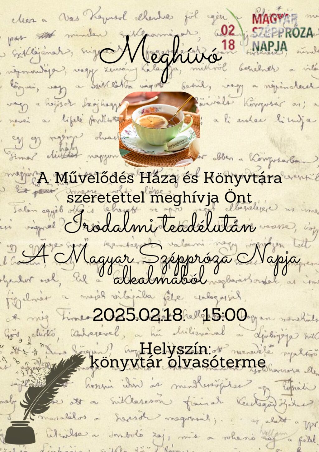 MEGHÍVÓ Irodalmi teadélutánra 2025.02.18. 15:00-óra