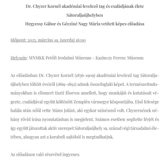 • Dr. Chyzer Kornél akadémiai levelező tag és családjának élete Sátoraljaújhelyben