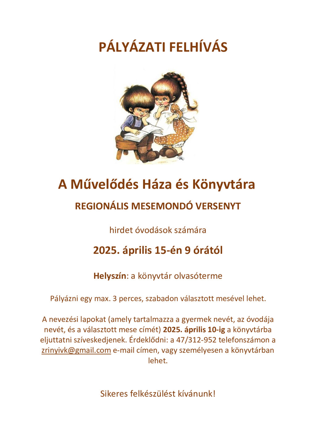 • PÁLYÁZATI FELHÍVÁS REGIONÁLIS MESEMONDÓ VERSENY