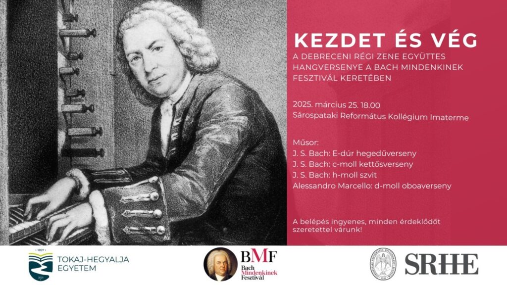 A Sárospataki Református Hittudományi Egyetem szeretettel hív és vár minden érdeklődőt a Bach mindenkinek fesztivál keretei között megrendezésre kerülő Debreceni Régi Zene Együttes hangversenyére.