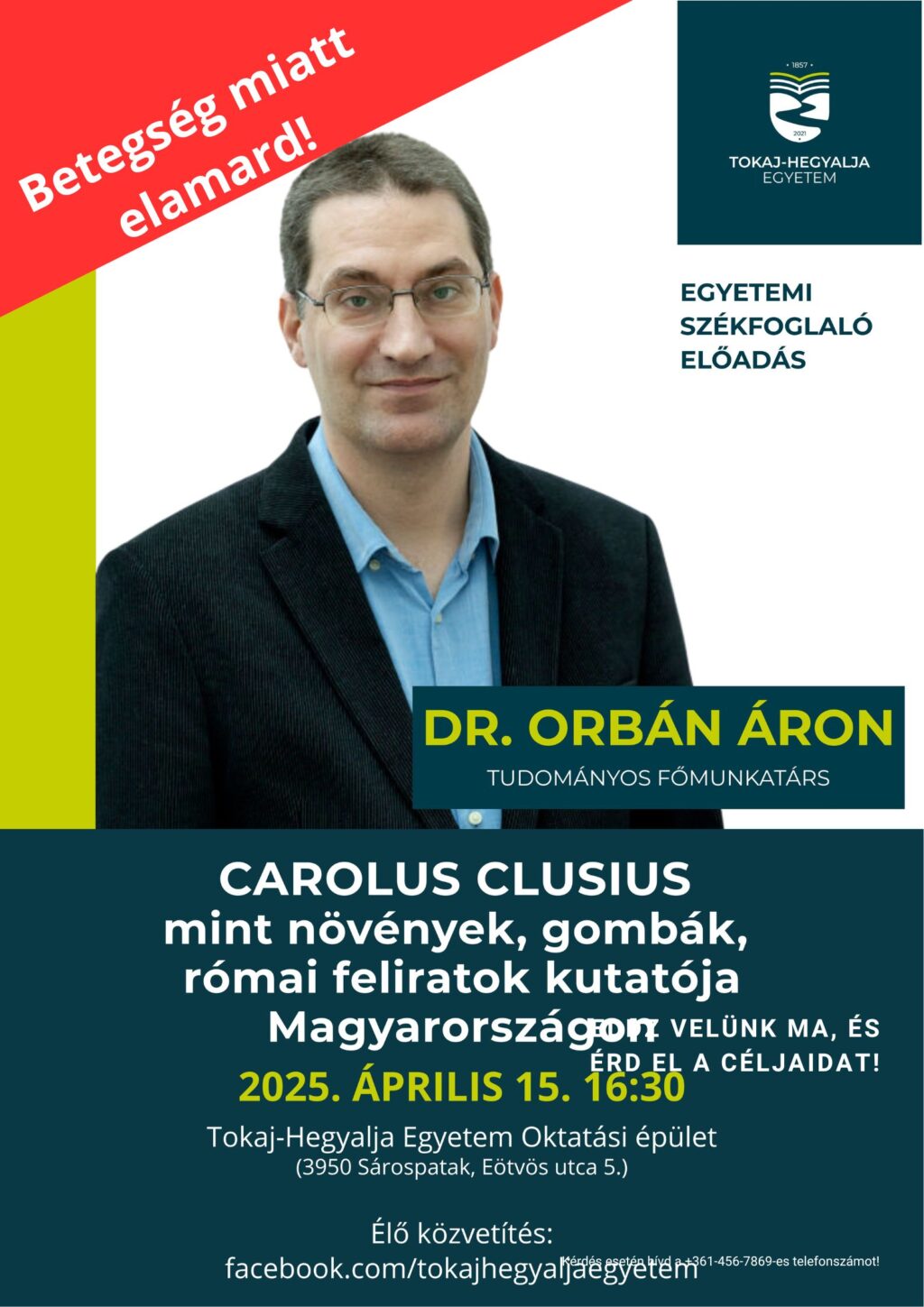 Egyetemi székfoglaló elmarad, betegség miatt !