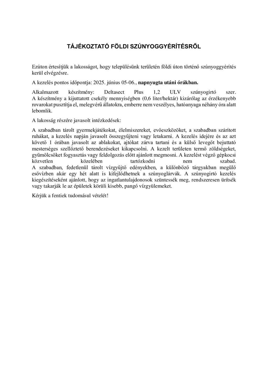 SZÚNYOGGYÉRÍTÉS 2025. június 05-06.
