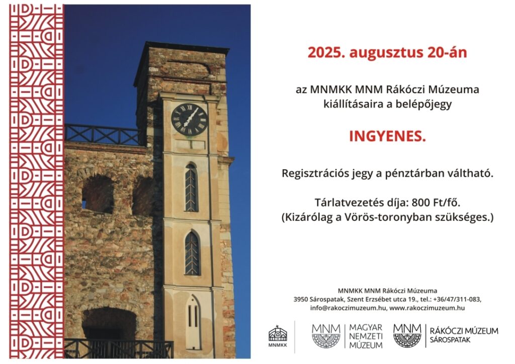 • 2025.augusztus 20-án az MNMKK MNM Rákóczi múzeum kiállításaira a belépés ingyenes