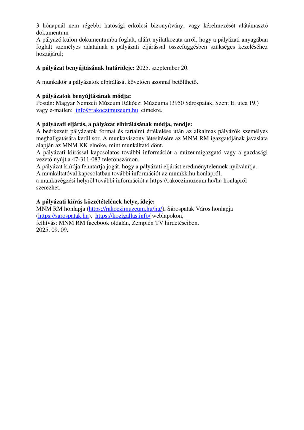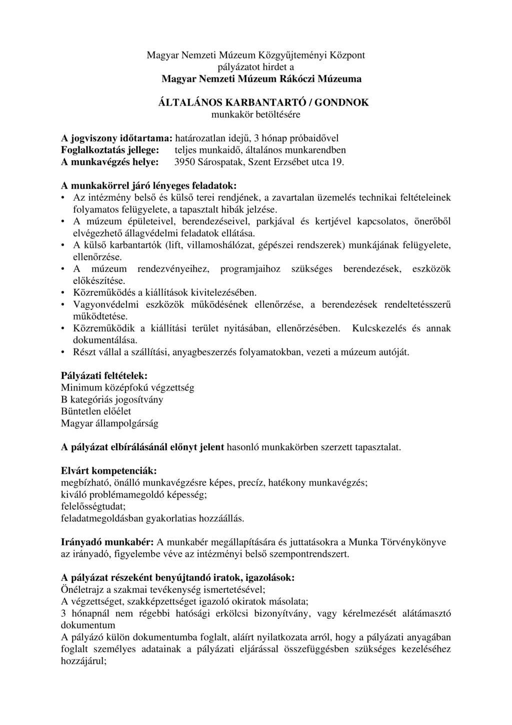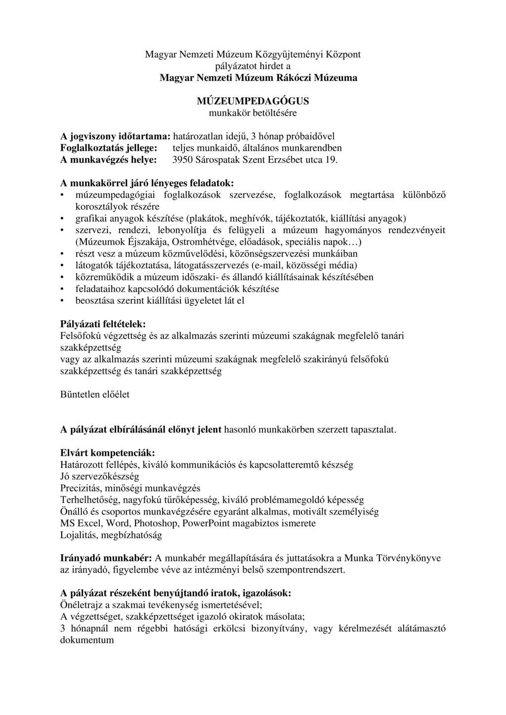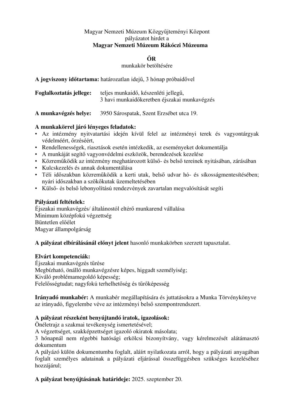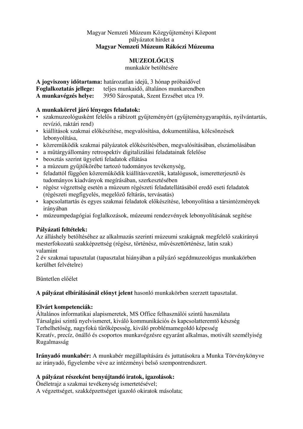 • Magyar Nemzeti Múzeum Közgyűjteményi Központ álláspályázatai