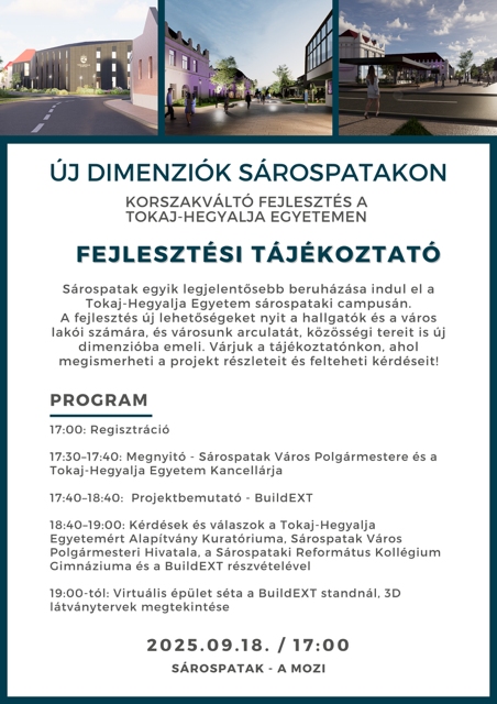 • Fejlesztési tájékoztató a Tokaj-Hegyalja egyetemen 2025.09.18.
