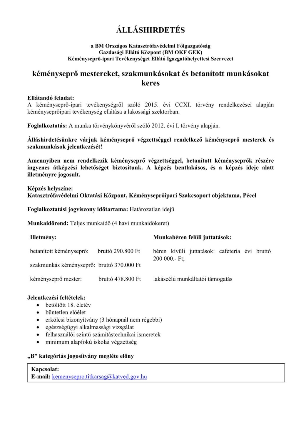 • Felhívás – Álláshirdetés