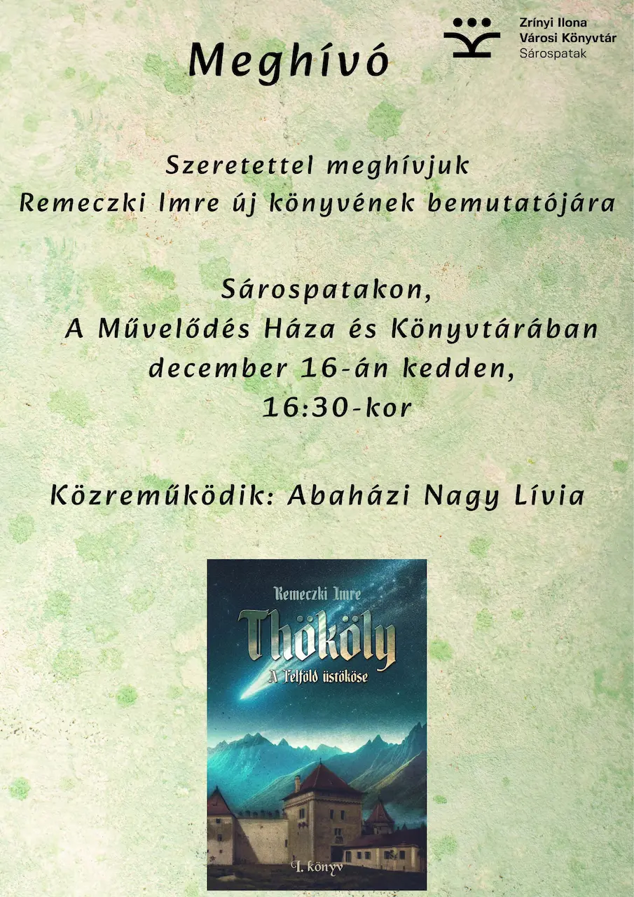 • Remecki Imre: Thököly a Felföld üstökose – könyvbemutató (Városi könyvtár) – 2025.12.16. 16:30